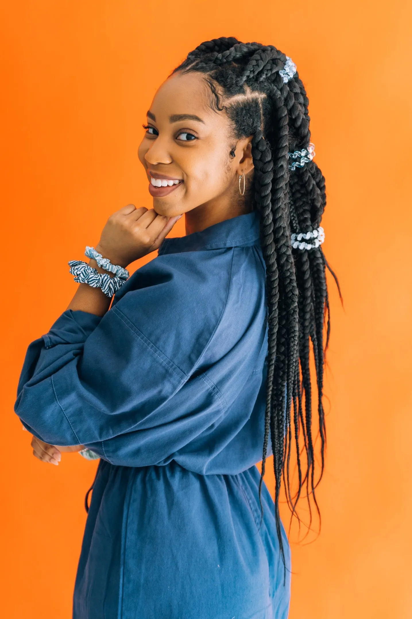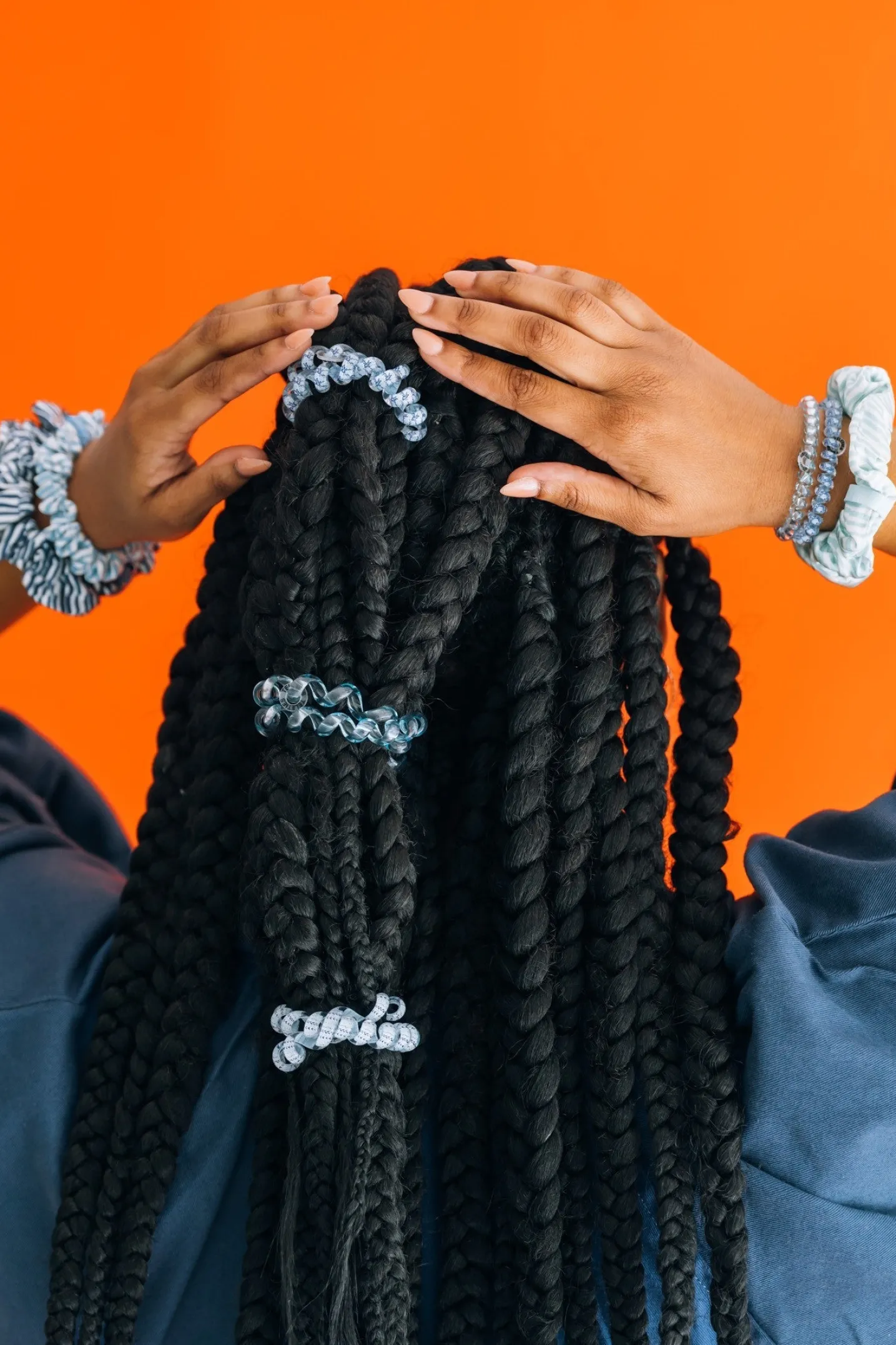 Hampton Bay Large Hair Ties in White Blue offer a strong grip without damage, doubling as a chic wrist accessory when not in use. Your new favorite hair essentials all year round.
