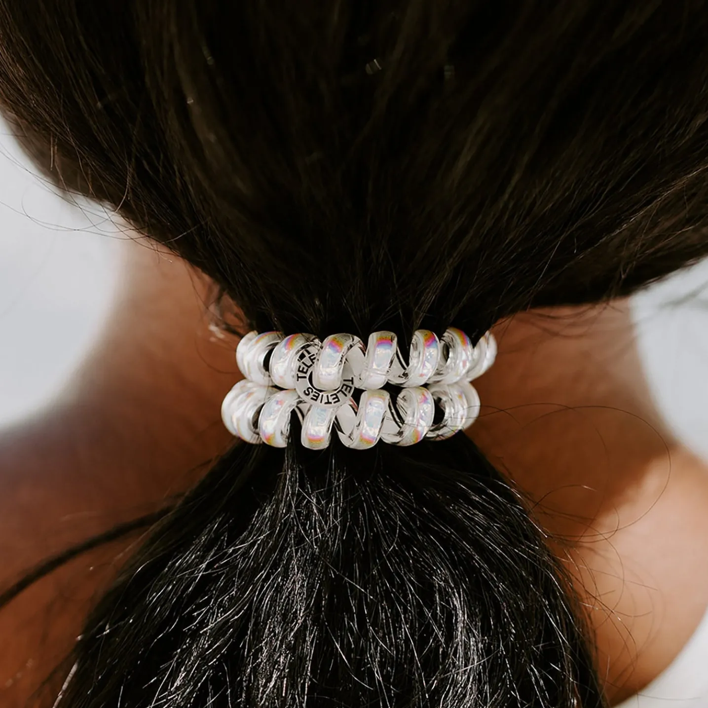 Peppermint Large Hair Ties in White offer a strong grip without damage, doubling as a chic wrist accessory when not in use. Your new favorite hair essentials all year round.