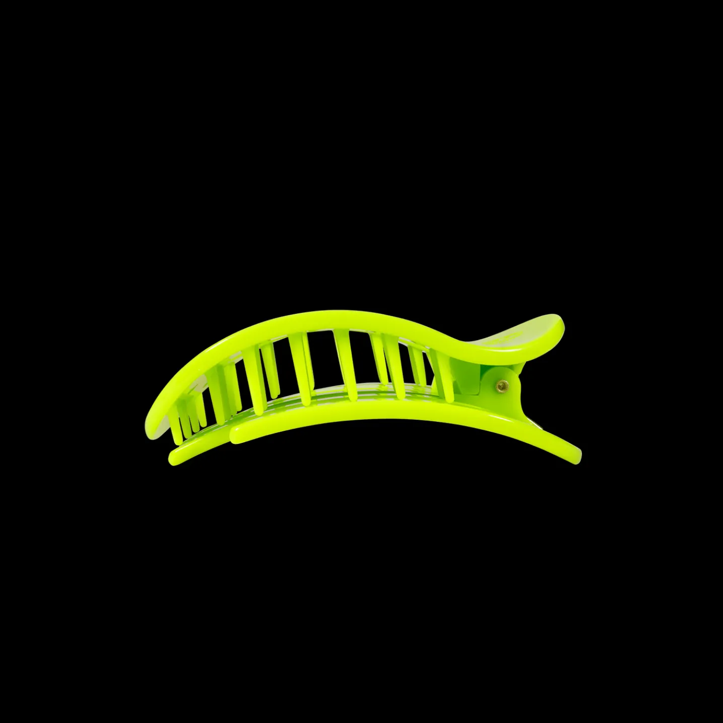 Lay flat and relax with the new TELETIES Summer Brights Small Flat Round Hair Clip in Neon Green. This hair clip is designed to allow you to lay back flat, do yoga, or sit comfortably in a seat with a headrest, and it is made with the same material that is nearly unbreakable.