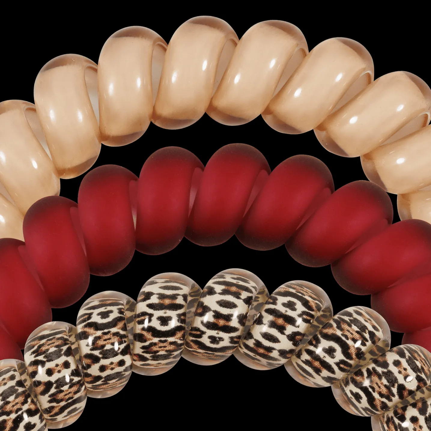 Wild SIde LargeHair Tiesin Burgundy and Beige offer a strong grip without damage, doubling as a chic wrist accessory when not in use. Your new favorite hair essentials all year round.