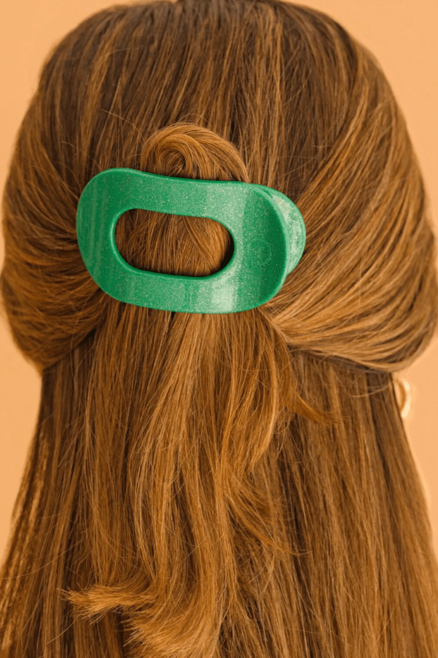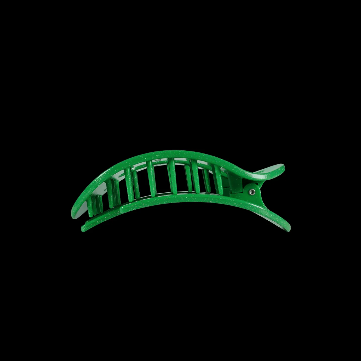 Lay flat and relax with the new TELETIES Shamrock Shimmer Small Flat Round Hair Clip in Green. This hair clip is designed to allow you to lay back flat, do yoga, or sit comfortably in a seat with a headrest, and it is made with the same material that is nearly unbreakable.