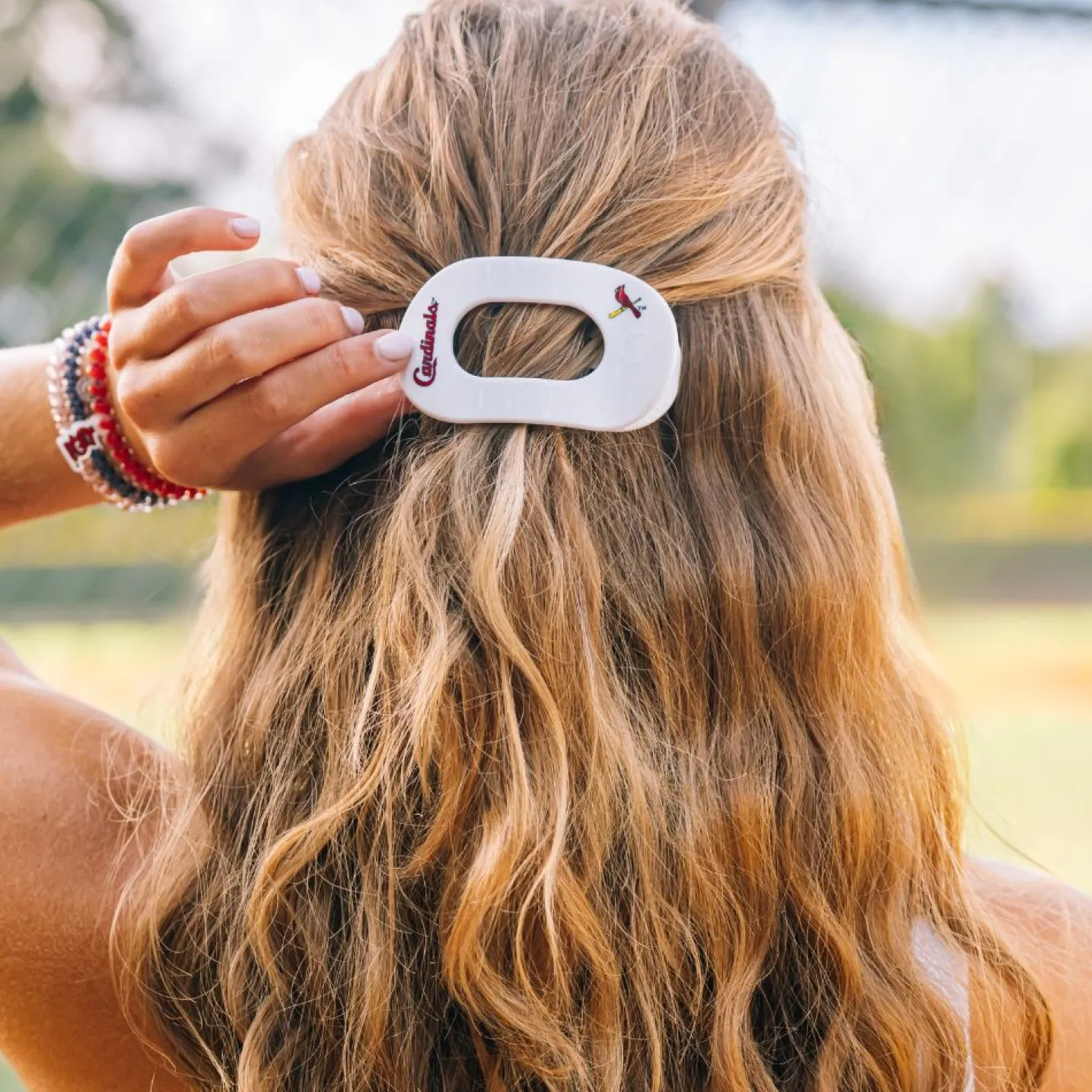 Lay flat and relax with the new TELETIES x MLB®, St. Louis Cardinals Medium Flat Round Hair Clip in White. This hair clip is designed to allow you to lay back flat, do yoga, or sit comfortably in a seat with a headrest, and it is made with the same material that is nearly unbreakable.